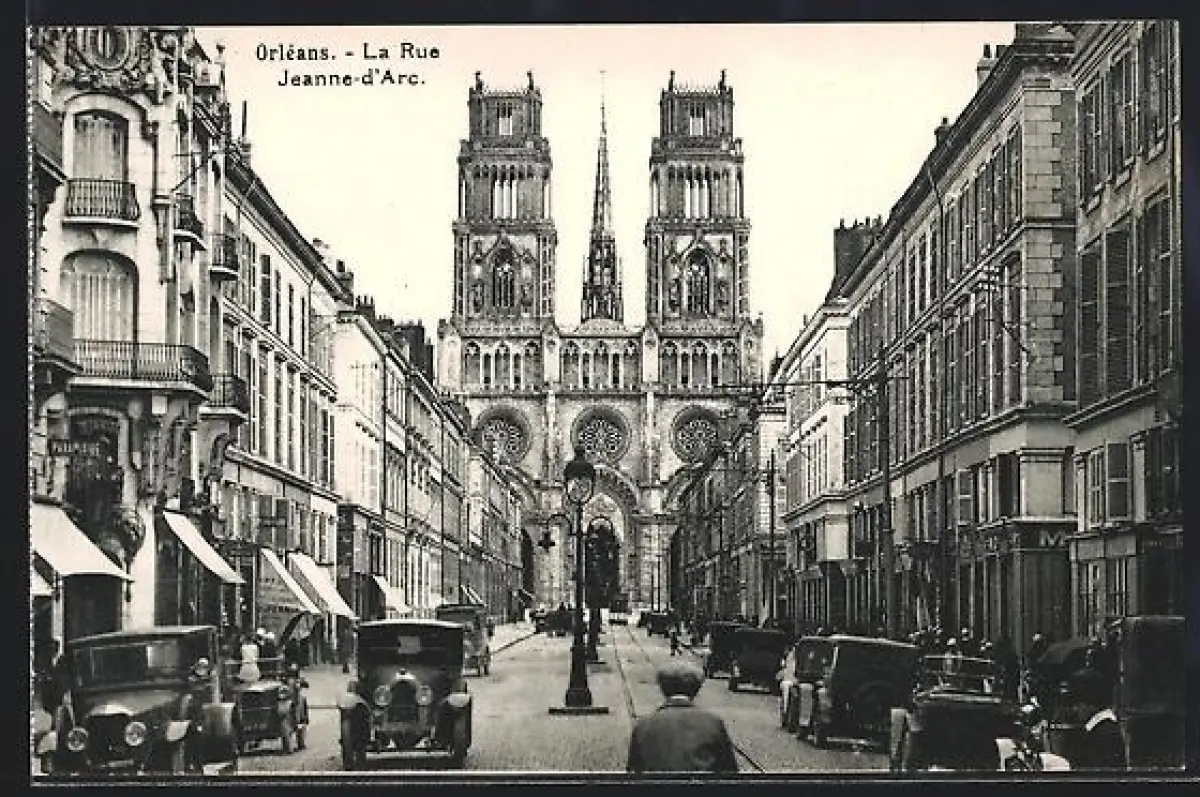 AK Orléans, La Rue Jeanne-d`Arc avec vue sur la cathédrale