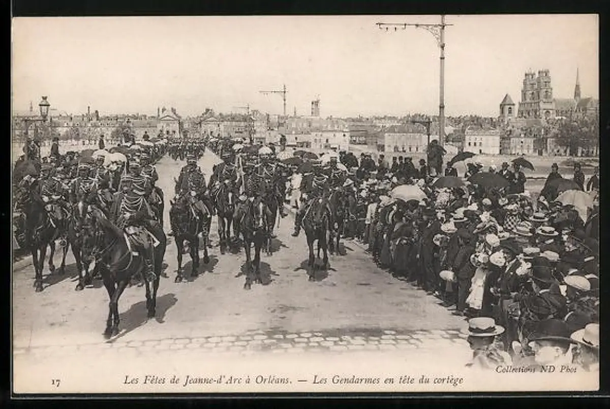AK Orléans, Les Gendarmes en tête du cortège, Polizei