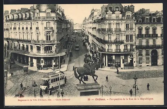 AK Orléans, Perspective de la Rue de la République, Strassenbahn