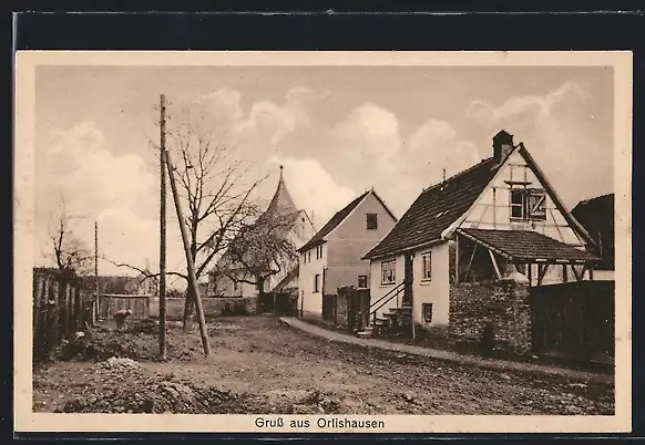 AK Orlishausen, Strassenpartie mit Wohnhäuser