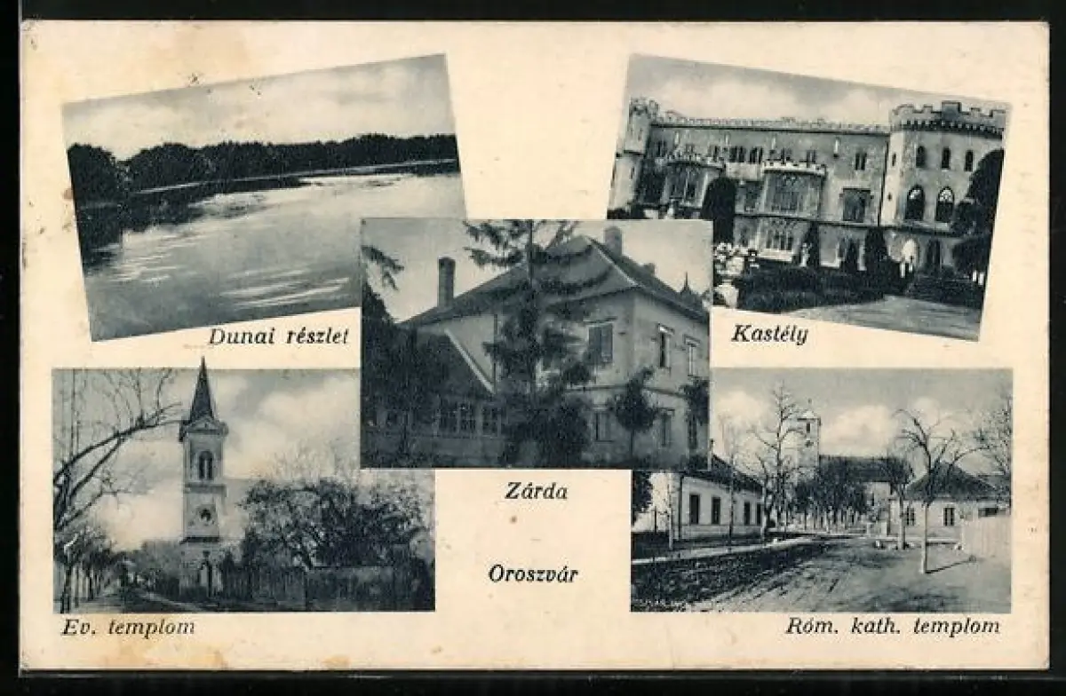 AK Oroszvár, Dunai részlet, Kastély, Ev. templom, Róm. kath. templom