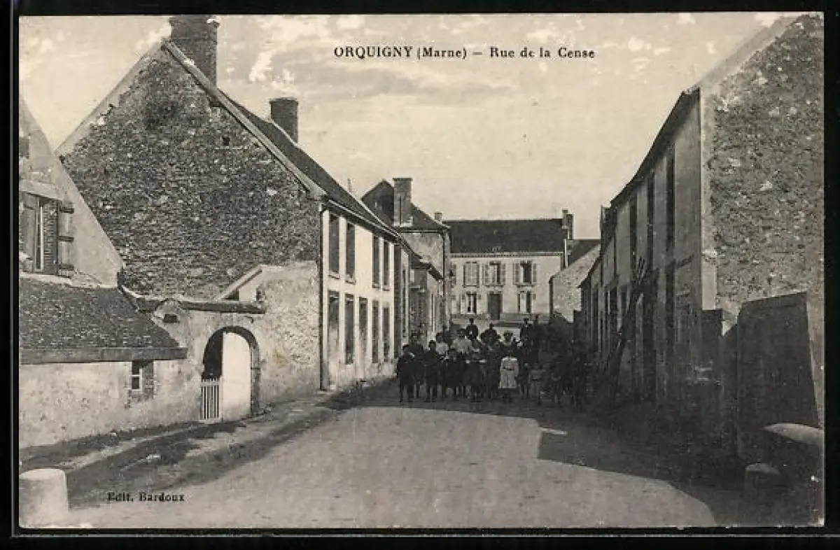 AK Orquigny /Marne, Rue de la Cense avec des habitants rassemblés