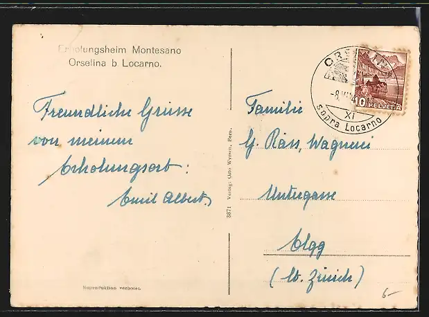 AK Orselina b. Locarno, Erholungsheim Montesano