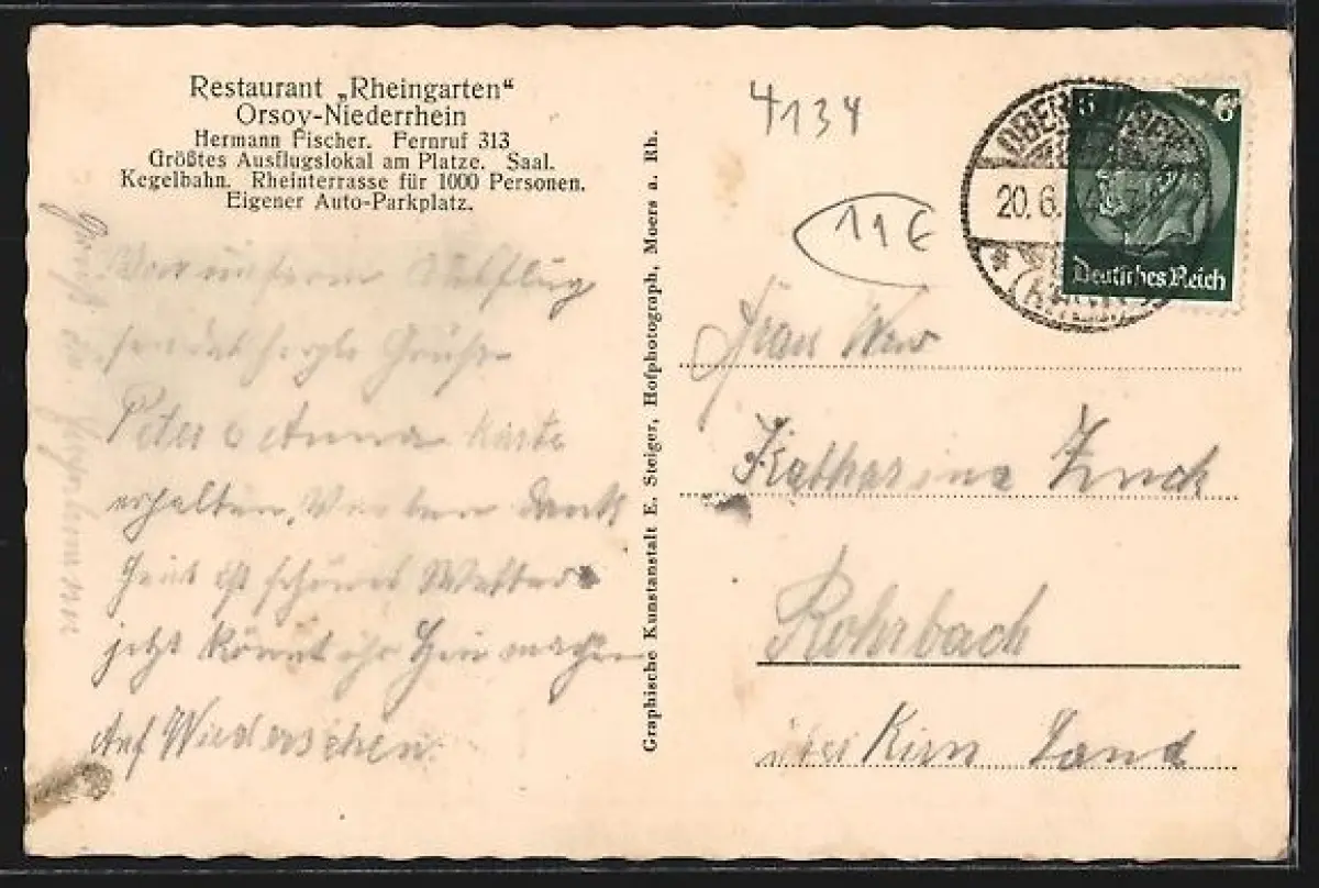 AK Orsoy-Niederrhein, Restaurant Rheingarten Hermann Fischer