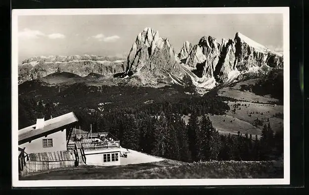 AK Ortisei-Alpe di Siusi, Stazione a monte col Gruppo del Sella e Sassolungo