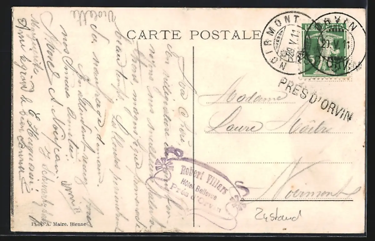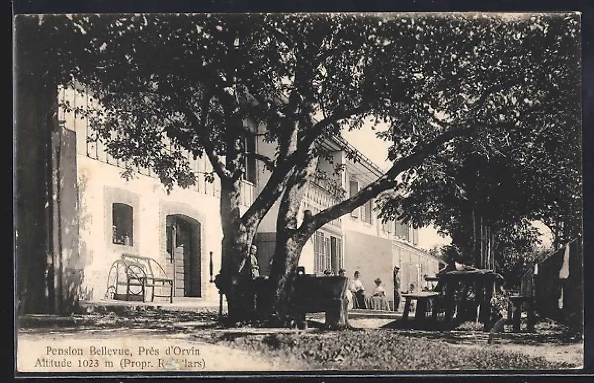AK Orvin, Pension Bellevue mit Gästen
