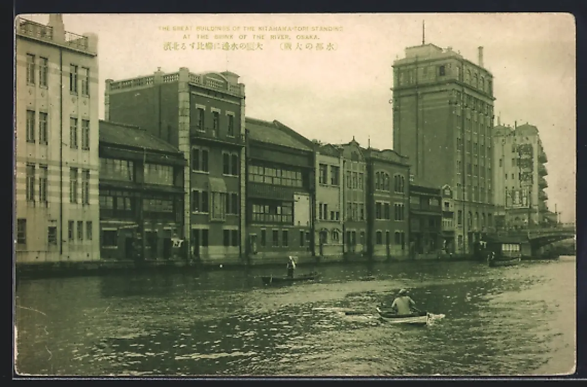 AK Osaka, The great buildings of the Kitahama-Tori standing at the brink of the river