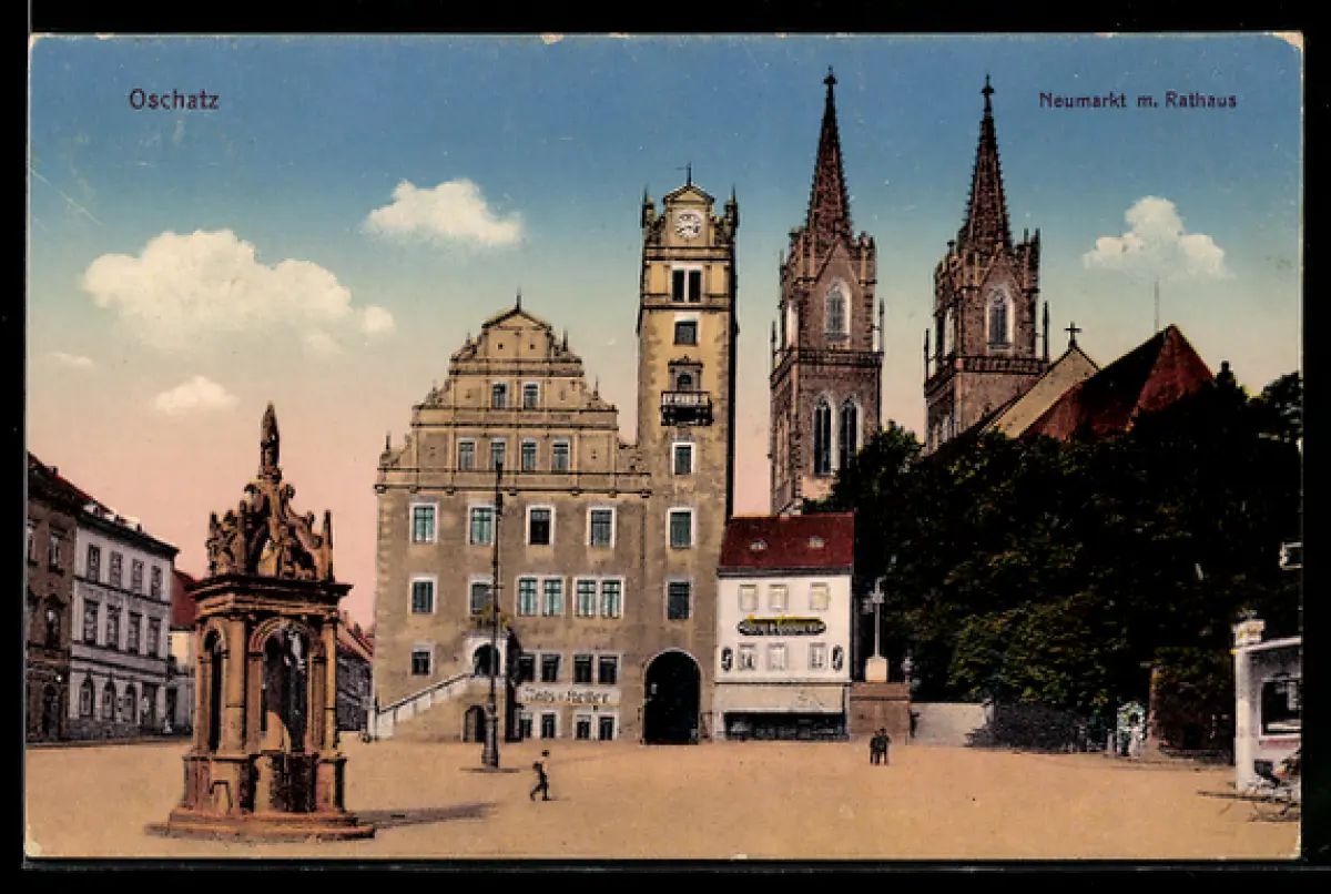 AK Oschatz, Neumarkt m. Rathaus