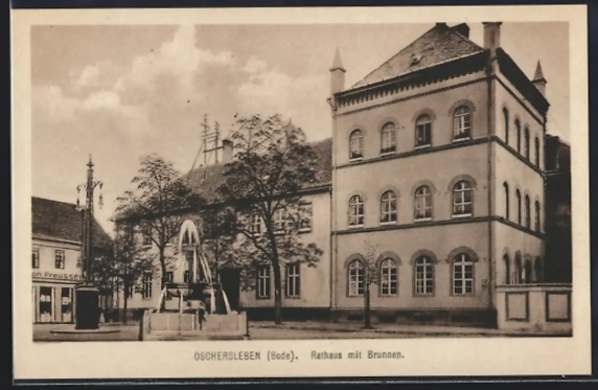 AK Oschersleben / Bode, Rathaus mit Brunnen