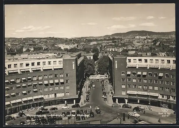 AK Oslo, Fr. Nansenspl. og Universitetsgt. sett fra Radhuset