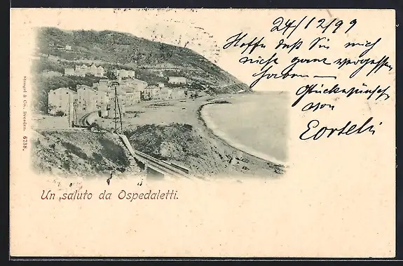 AK Ospedaletti, Ortsansicht mit Küstenpartie