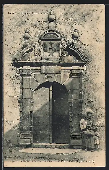 AK Osse, Les Pyrénées Illustrées, Vallée d`Aspe, Le Portail de l`Eglise