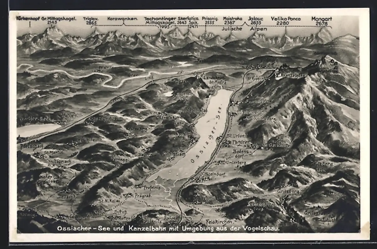 AK Ossiach, Kanzelbahn, Umgebung aus der Vogelschau