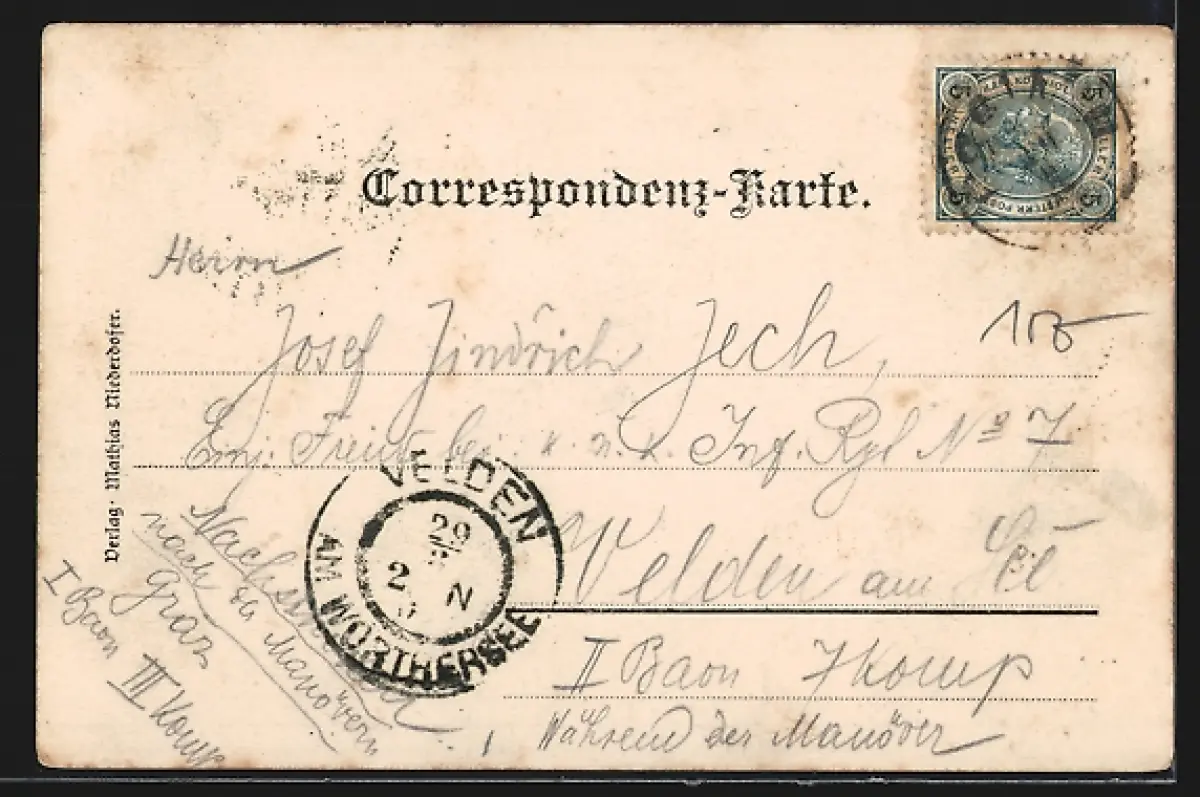 alte Ansichtskarte, gelaufen 1904, Stempelspur, guter Zustand