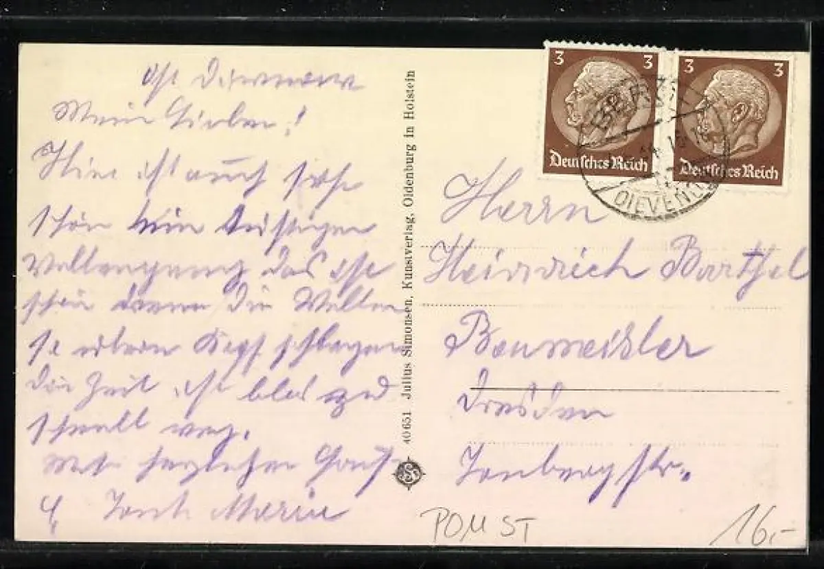 alte Ansichtskarte, gelaufen 1934, guter Zustand