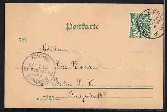 alte Ansichtskarte, gelaufen 1899, guter Zustand