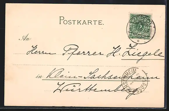 alte Ansichtskarte, gelaufen 1899, guter Zustand