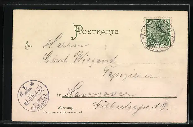 alte Ansichtskarte, gelaufen 1901, guter Zustand