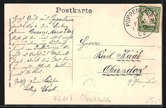 alte Ansichtskarte, gelaufen 1908, guter Zustand