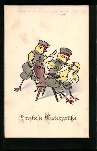 AK Ostergrüsse mit Osterküken in deutschen Uniformen