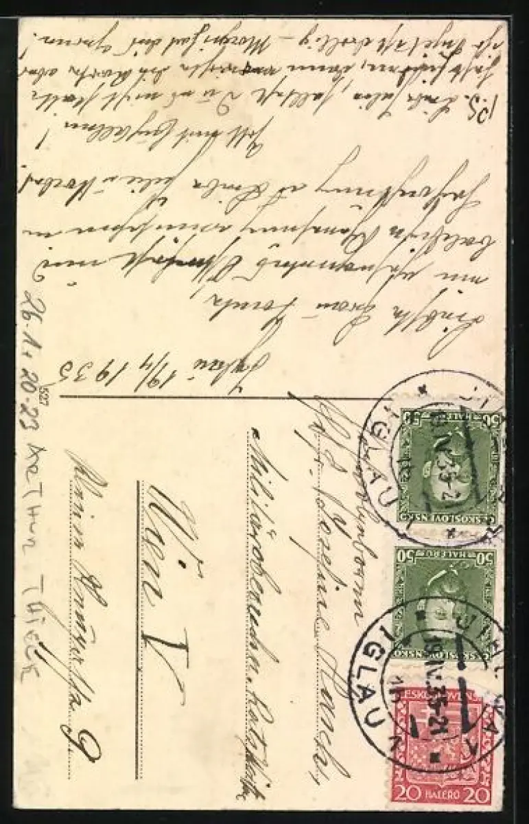 alte Ansichtskarte, gelaufen 1935, Stempelspur, guter Zustand