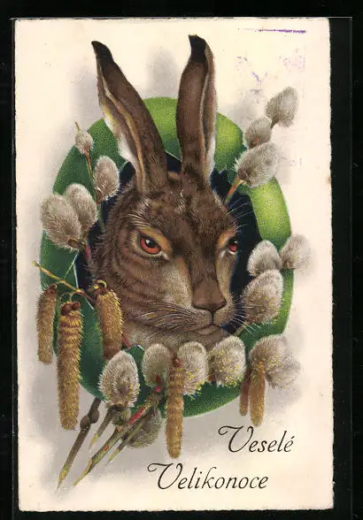 AK Osterhase mit Pamkätzchenzweigen