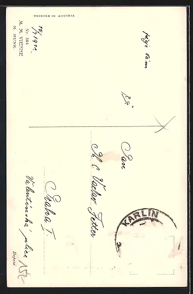 alte Ansichtskarte, gelaufen, Briefmarke entfernt, rückseitig Oberflächenschaden, guter Zustand