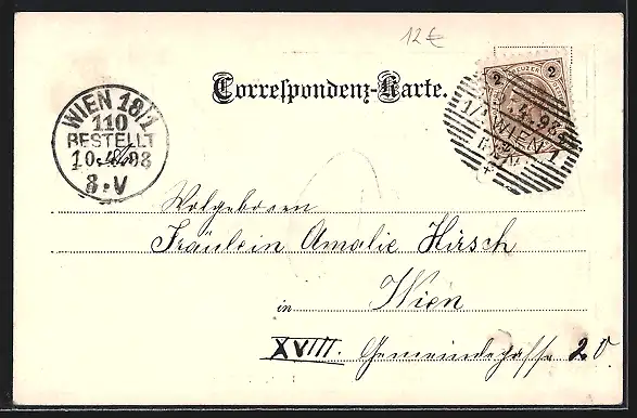alte Ansichtskarte, gelaufen 1898, Stempelspur, guter Zustand