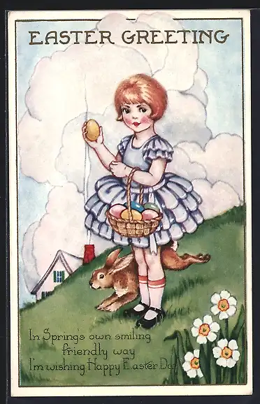 AK Osterhase und Mädchen auf einer Wiese, Easter Greeting