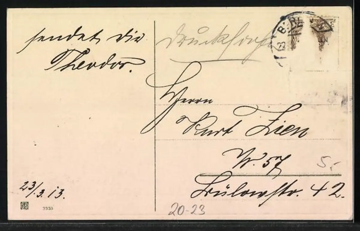 alte Ansichtskarte, gelaufen, Briefmarke entfernt, rückseitig Oberflächenschaden, Stempelspur, guter Zustand