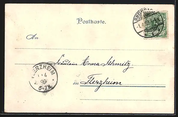 alte Ansichtskarte, gelaufen 1899, guter Zustand