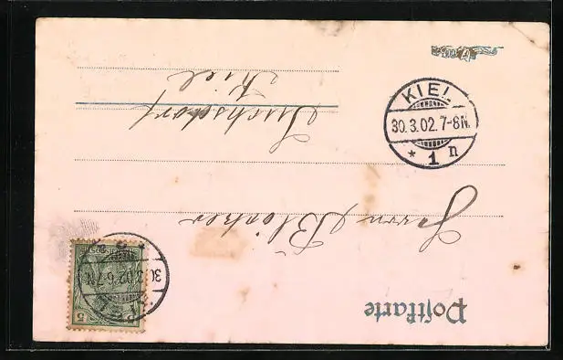 gelaufen 1902, Eckknick oben links, Bugspur mittig, guter Zustand