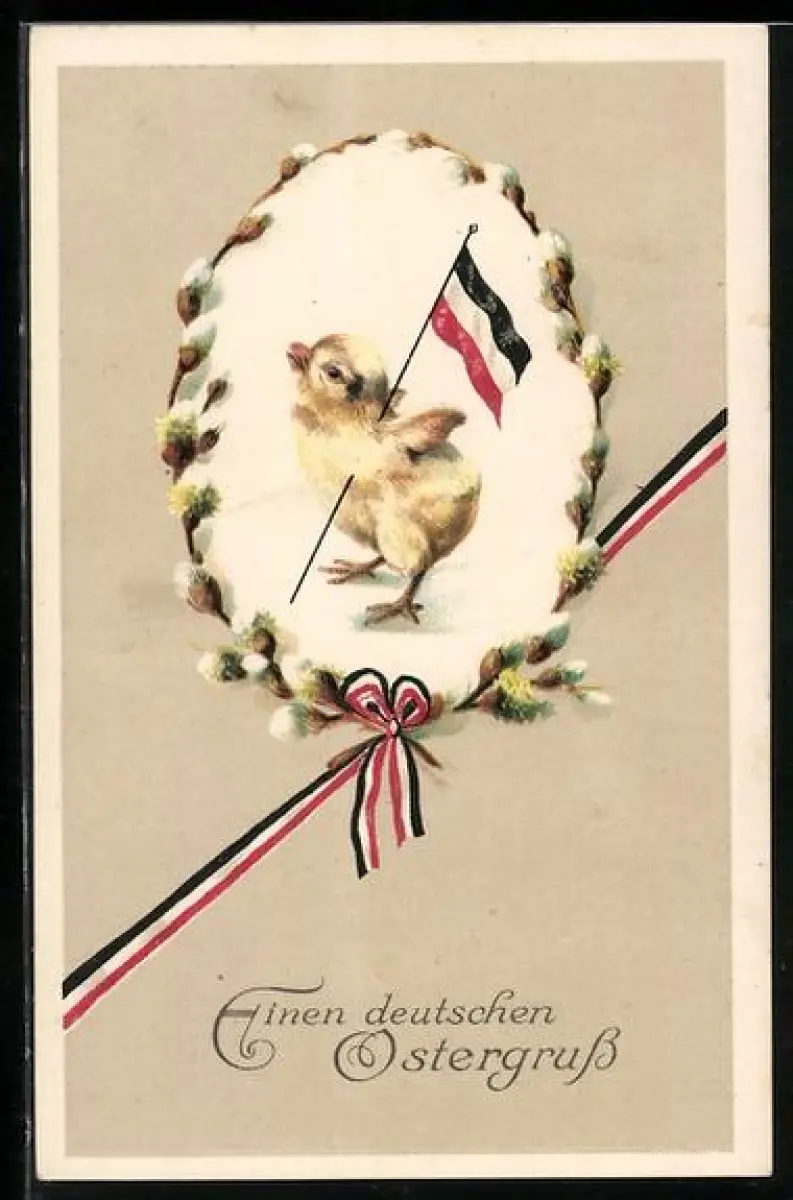 AK Osterküken mit einer Reichsflagge
