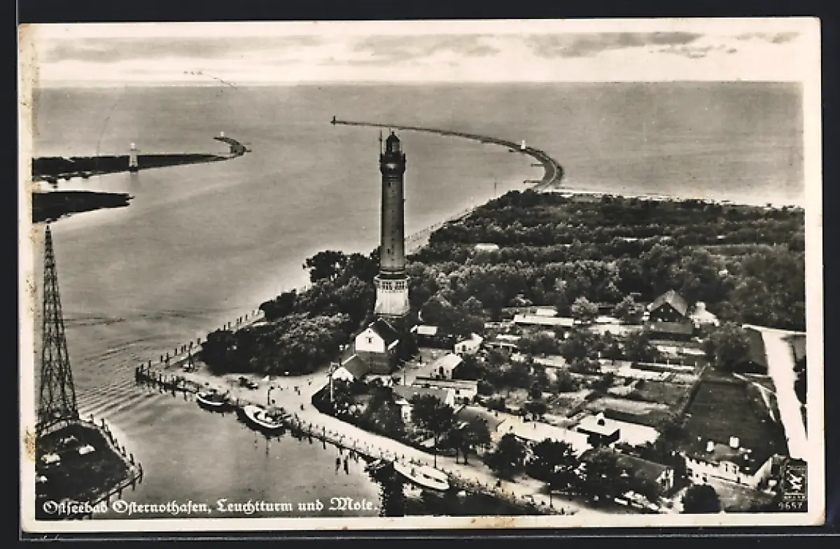 AK Osternothafen, Leuchtturm & Mole aus der Vogelschau