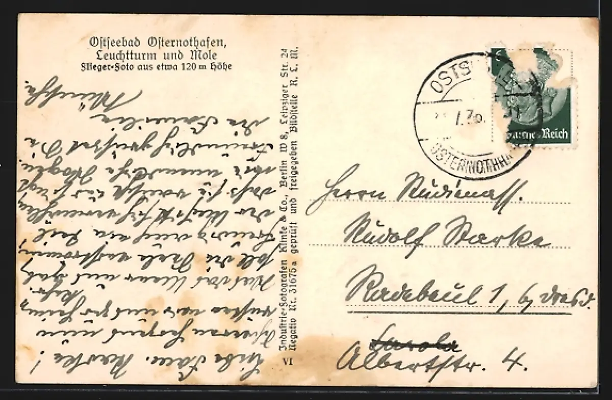alte Ansichtskarte, gelaufen, Briefmarke entfernt, rückseitig Oberflächenschaden, guter Zustand