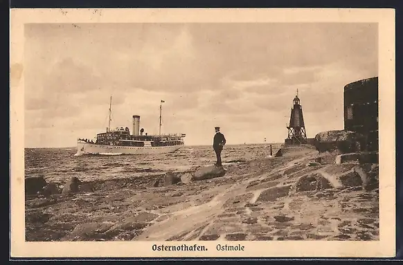 AK Osternothafen, Ostmole mit einlaufendem Bäderdampfer Hertha