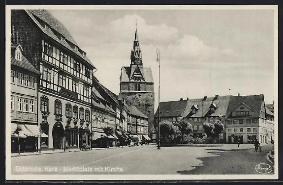 AK Osterode /Harz, Marktplatz mit Kirche und Schuhhaus