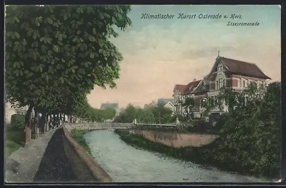 AK Osterode a. Harz, Sösepromenade mit Flusspartie