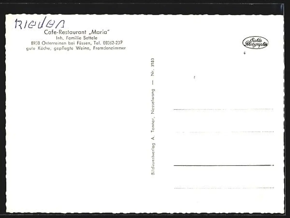 AK Osterreinen bei Füssen, Cafe-Restaurant Maria, Inh. Familie Settele