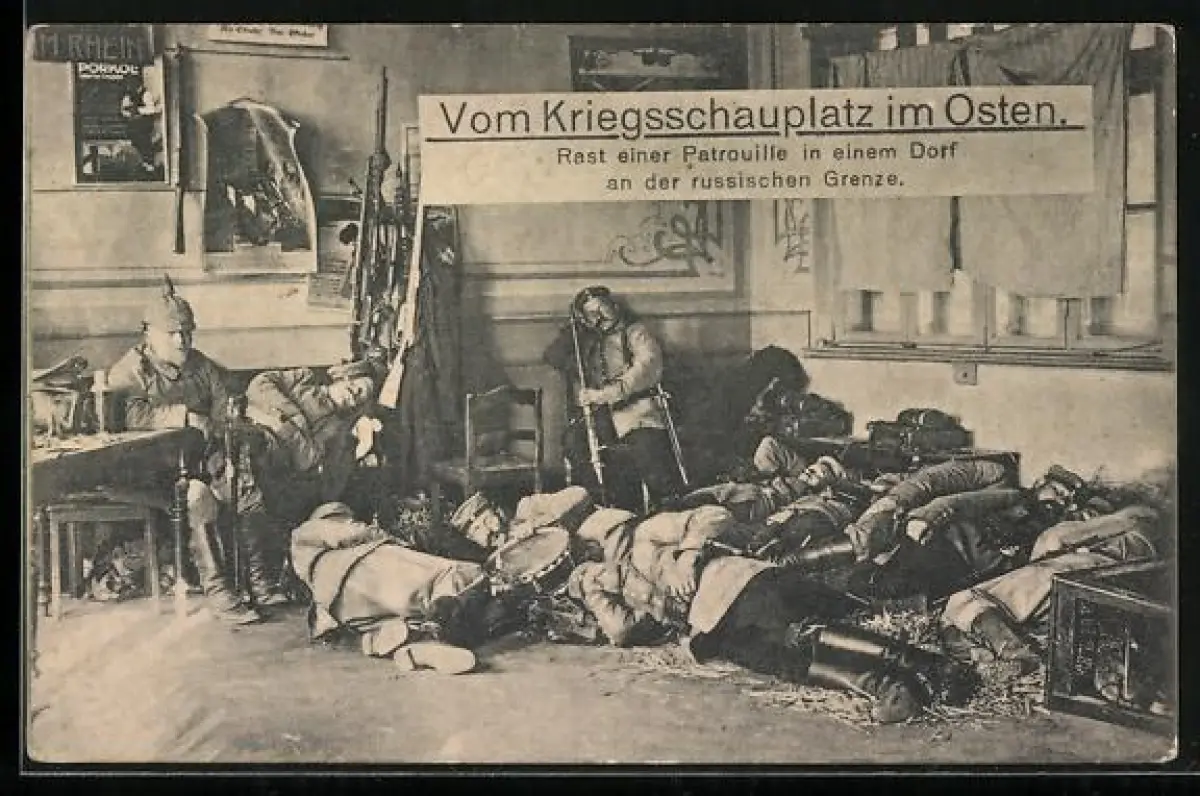 AK Ostfront, Deutsche Patrouille rastet in einem Haus an der russischen Grenze