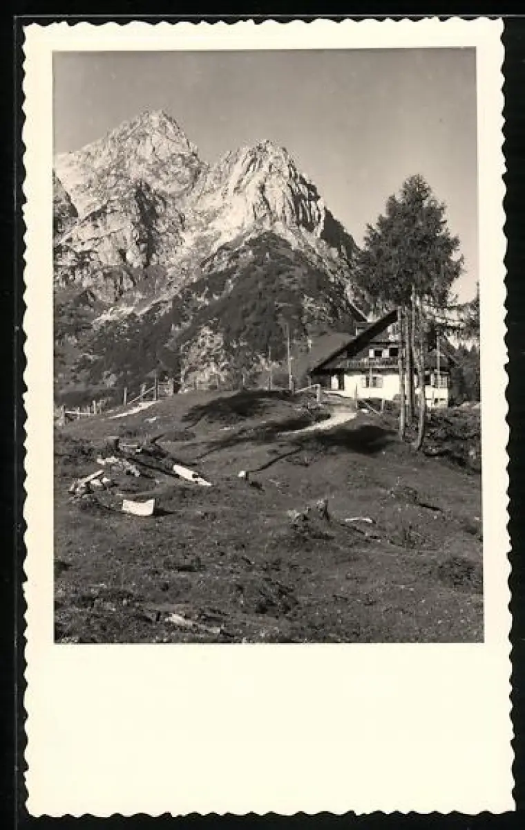 AK Ostpreussenhütte, Berghütte vor Gipfelpanorama