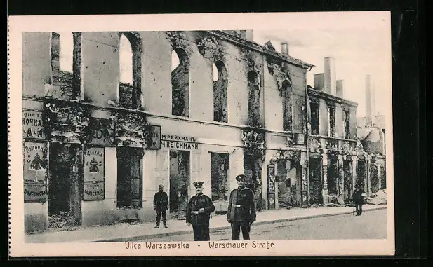 AK Ostrowo, Warschauer Strasse, Soldaten in Uniform