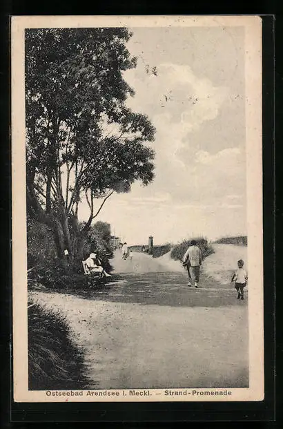 AK Ostseebad Arendsee i. Meckl., Strand-Promenade mit Passanten
