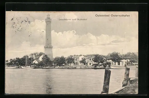 AK Ostseebad Osternothafen, Leuchtturm und Nothafen