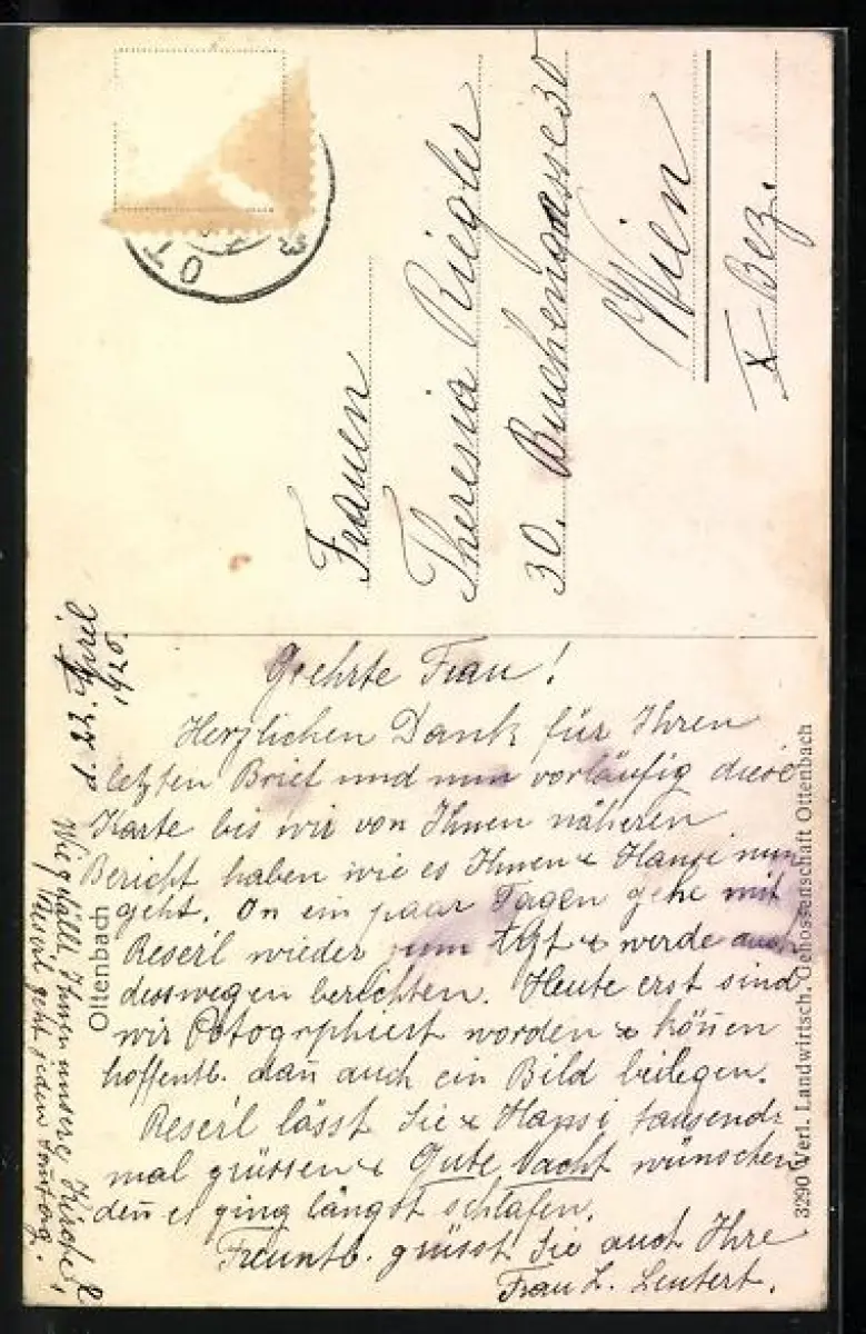 alte Ansichtskarte, gelaufen 1920, Eckknick, rückseitig Oberflächenschaden, guter Zustand