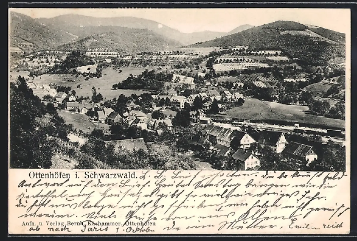 AK Ottenhöfen i. Schwarzwald, Ortsansicht mit Bergen
