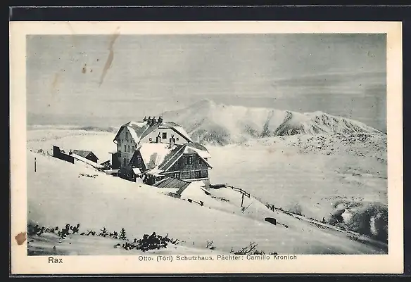 AK Ottoschutzhaus am Rax, Ansicht im Winter, Bes. Camillo Kronich