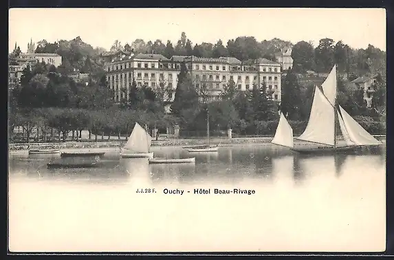 AK Ouchy, Hotel Beau Rivage, Segelboote auf dem See