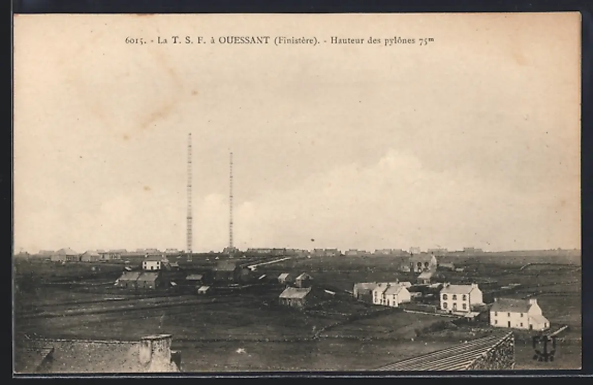 AK Ouessant /Finistère, La T. S. F. à Ouessant, Hauteur des pylônes 75m
