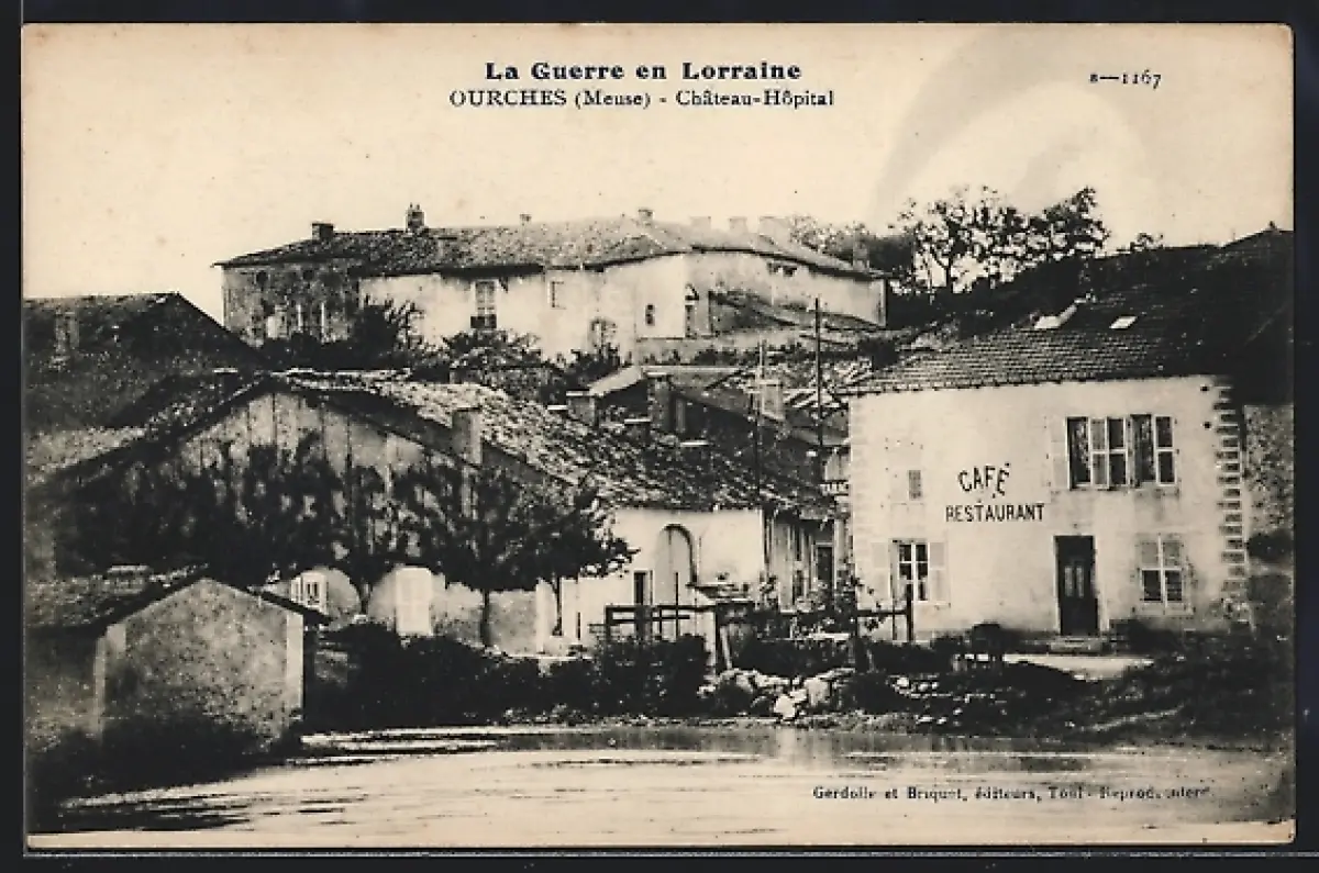 AK Ourches /Meuse, Château-Hôpital et Café Restaurant au bord de l`eau
